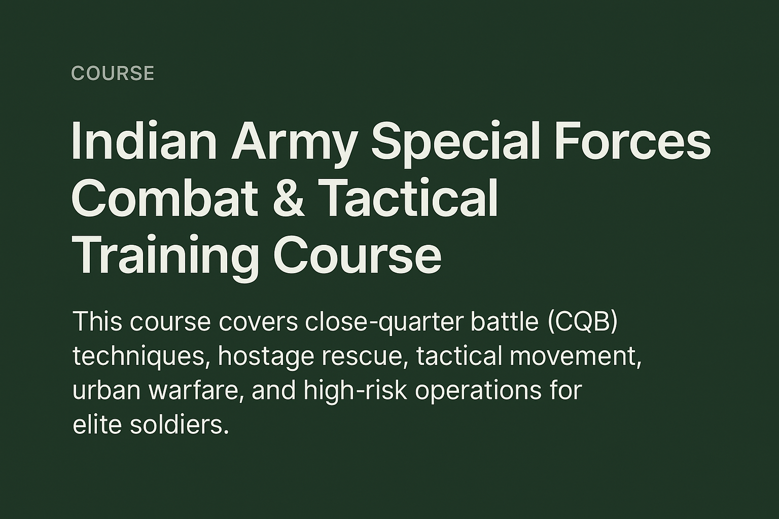 This course is designed for elite military personnel, covering close-quarter battle (CQB), hostage rescue, tactical movement, and hand-to-hand combat techniques. Soldiers will train in urban warfare, ambush tactics, and high-risk operations.